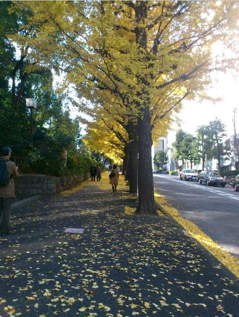 途中の歩道は、銀杏並木が素晴らしく、すみれちゃんは銀杏の落ち葉を舞い上がらせたり、なんと無邪気なお方でしょうか(笑)